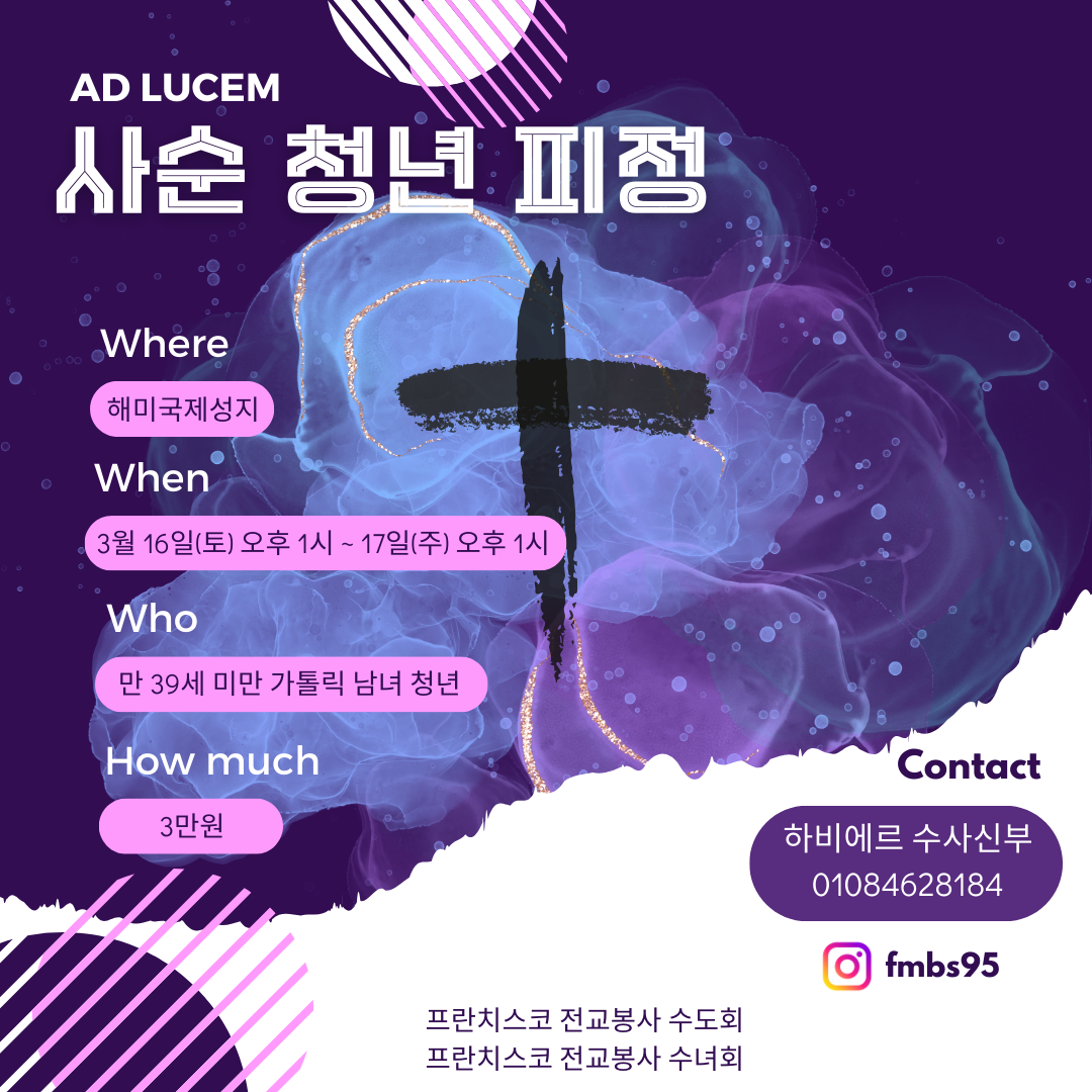 ![]() û³â »ç¼ø ÇÇÁ¤ ÁÖÁ¦ : AD LUCEM û³â »ç¼ø ÇÇÁ¤ ÀϽà : 3¿ù 16ÀÏ(Åä) ¿ÀÈÄ 1½Ã ~ 17ÀÏ(ÀÏ) ¿ÀÈÄ 1½Ã Àå¼Ò : ÇØ¹Ì±¹Á¦¼ºÁö ´ë»ó : ¸¸39¼¼ ÀÌÇÏ °¡Å縯 ¹ÌÈ¥ ³²³à Âü°¡ºñ : 3¸¸¿ø ÁÖÃÖ : ÇÁ¶õÄ¡½ºÄÚ Àü±³ºÀ»ç ¼öµµÈ¸ & ÇÁ¶õÄ¡½ºÄÚ Àü±³ºÀ»ç ¼ö³àȸ ¹®ÀÇ : ÇϺñ¿¡¸£ ¼ö»ç ½ÅºÎ 010-8462-8184 #ÇÁ¶õÄ¡½ºÄÚÀü±³ºÀ»ç¼öµµÈ¸ #ÇÁ¶õÄ¡½ºÄÚÀü±³ºÀ»ç¼ö³àȸ #adlucem #ºûÀ»µû¶ó¼ #û³â #»ç¼øÇÇÁ¤ #û³â»ç¼øÇÇÁ¤ #ÇØ¹Ì±¹Á¦¼ºÁö
